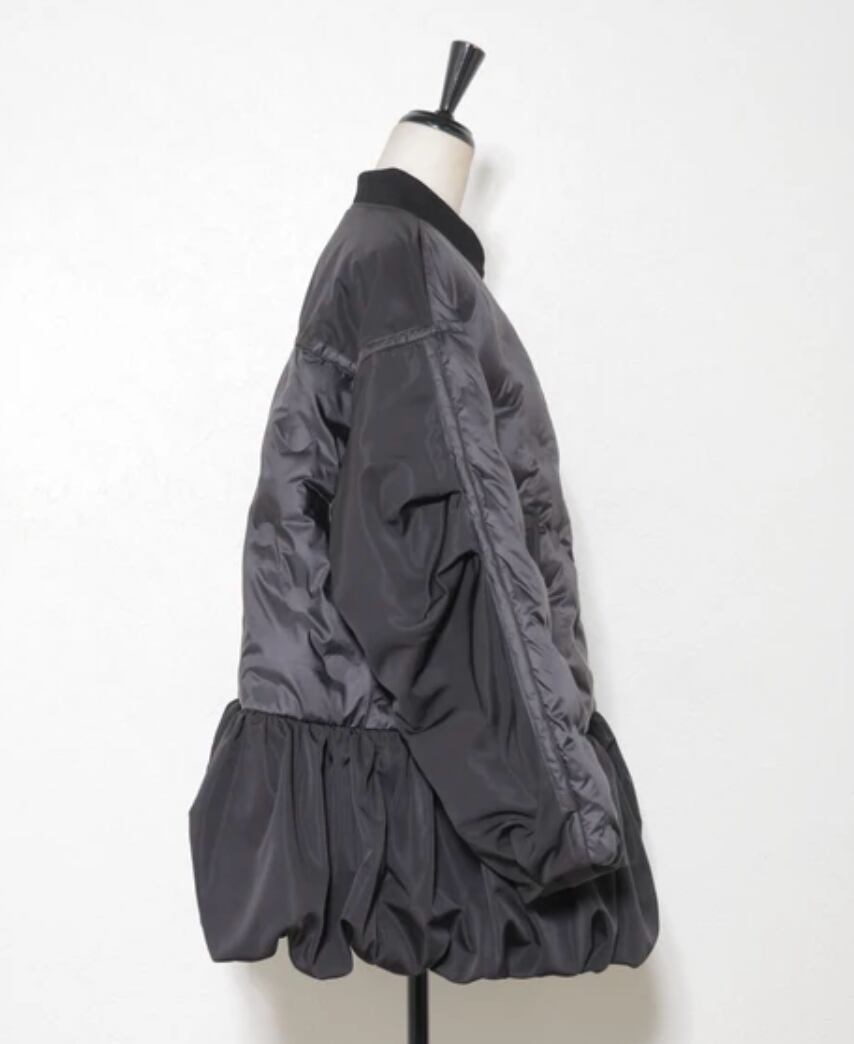 ヘムギャザードットキルティング中綿フレアコート